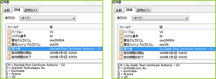 (以下は、それぞれのG2/SHA-2ルート証明書詳細情報)